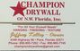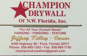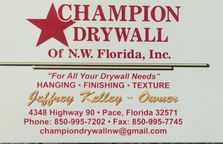 Welcome to Champion Drywall Of Northwest Florida Inc., your go-to source for professional drywall services. Our team of skilled contractors is committed to delivering exceptional results on every project, no matter the size or complexity. From installation to repair and everything in between, we have the expertise and experience to get the job done right. Contact us today to learn more about our services and to request a free quote.